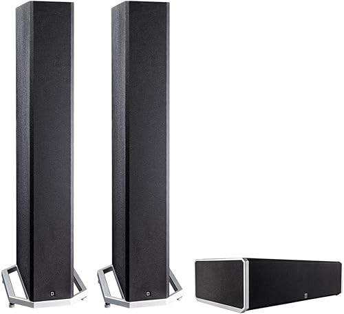 Not enough room on the floor to fit a separate subwoofer? This bundle includes two Definitive Technology BP9040 bipolar floor standing tower speakers which each feature a built-in 8″ powered subwoofer in addition to the array of front and rear firing drivers and passive radiators, together with the matching CS9040 center channel speaker. Because the towers each feature an integrated powered sub, they both need to be plugged into an AC outlet for power, and you also need to supply or buy two subwoofer cables to run from the subwoofer outputs on back of the receiver to the LFE inputs on back of each tower — in addition to regular speaker wires. [Buy at Amazon]